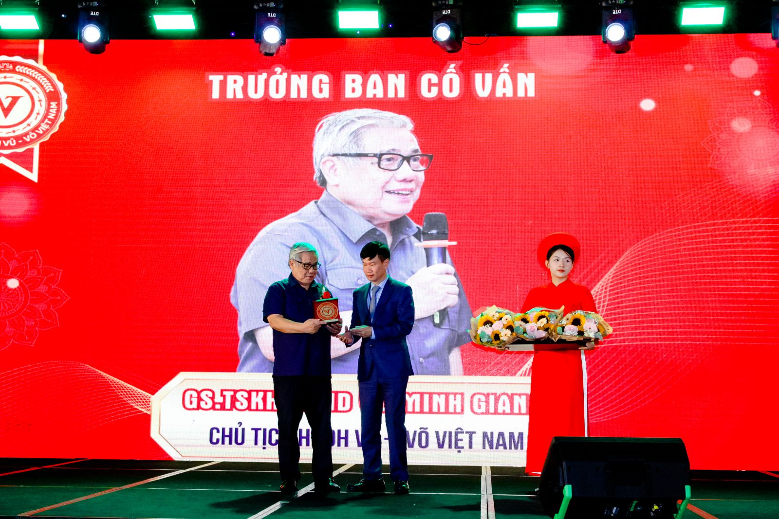 GS.TSKH.NGND. Vũ Minh Giang – Chủ tịch HĐDH Vũ - Võ Việt Nam, thay mặt Ban Cố vấn, đã bày tỏ niềm vui và kỳ vọng lớn lao: Ông đã phân tích về ý nghĩa của 2 câu đối " Nhân trí truyền Gia muôn đời thịnh - Đồng tâm dựng nghiệp vạn sự thành" và rất mong Hội Doanh nhân Vũ - Võ Việt Nam sẽ trở thành nơi hội tụ tinh hoa của đội ngũ doanh nhân dòng họ trên cả nước, tạo dấu ấn đặc biệt trong kỷ nguyên hội nhập, góp phần gìn giữ giá trị truyền thống và đóng góp tích cực vào sự phát triển chung của đất nước.