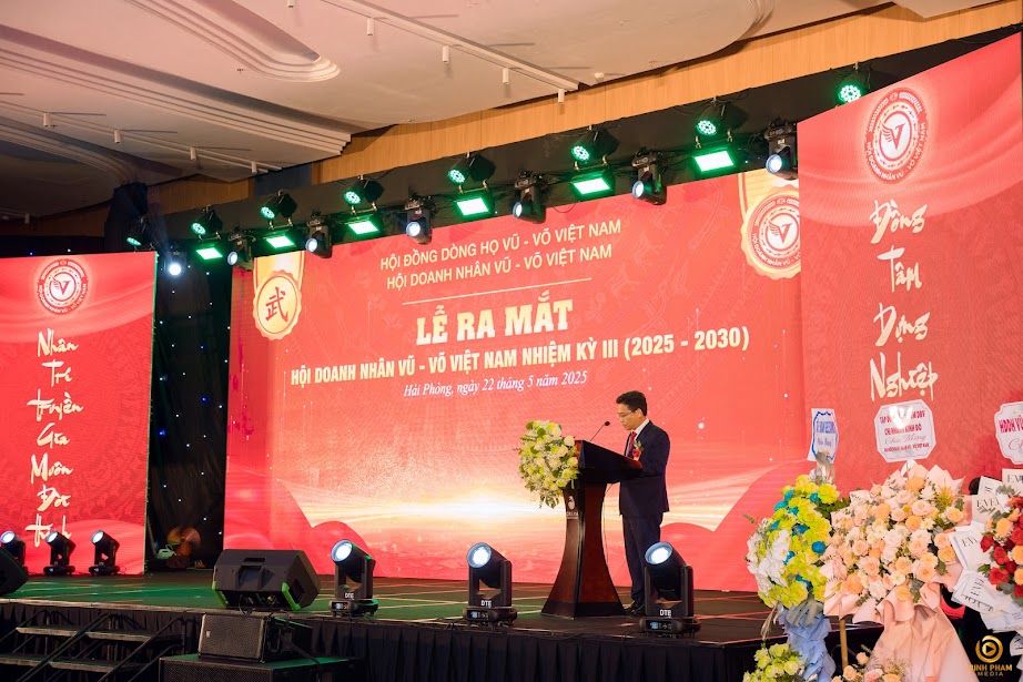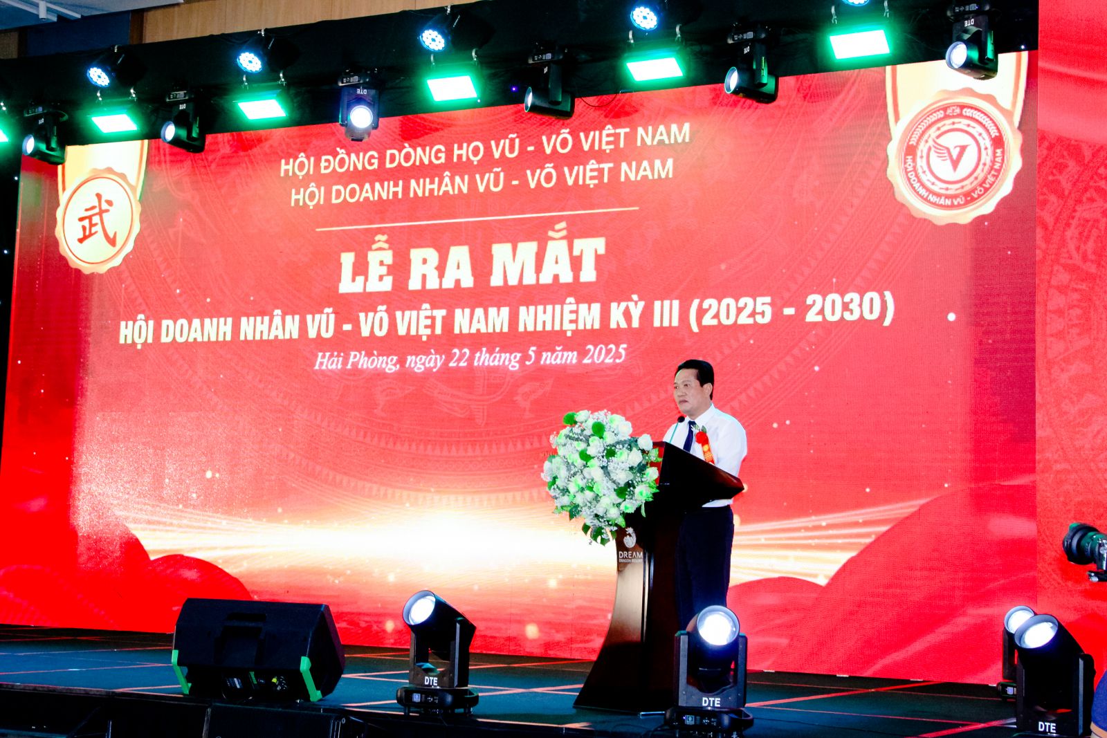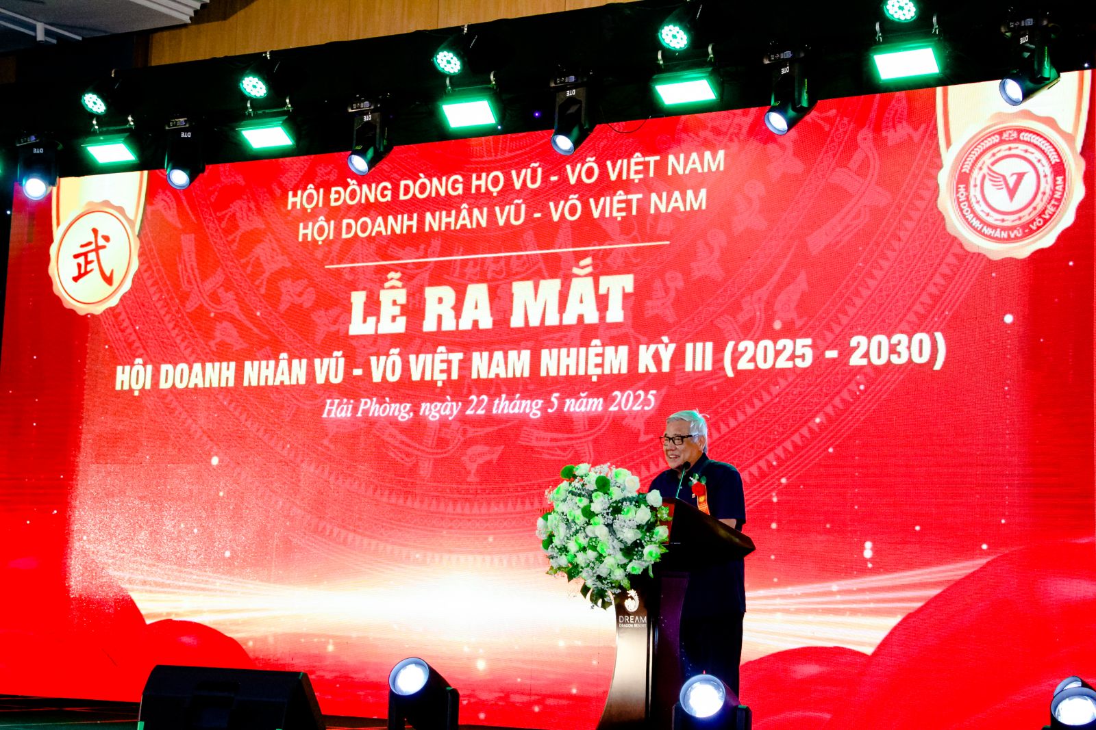 Ông Vũ Nguyên Thái – Phó Chủ tịch Thường trực Hội, đồng thời là Chủ tịch HĐDH Vũ - Võ TP Hải Phòng, cũng đã có bài phát biểu xúc động. Ông điểm lại quá trình xây dựng và phát triển bền vững của HĐDH TP Hải Phòng suốt hơn 30 năm, những nỗ lực trong việc kiến thiết các công trình tâm linh tiêu biểu, phát triển cộng đồng và khẳng định vai trò tiên phong của lực lượng doanh nhân trong các hoạt động kết nối và phụng sự dòng họ.