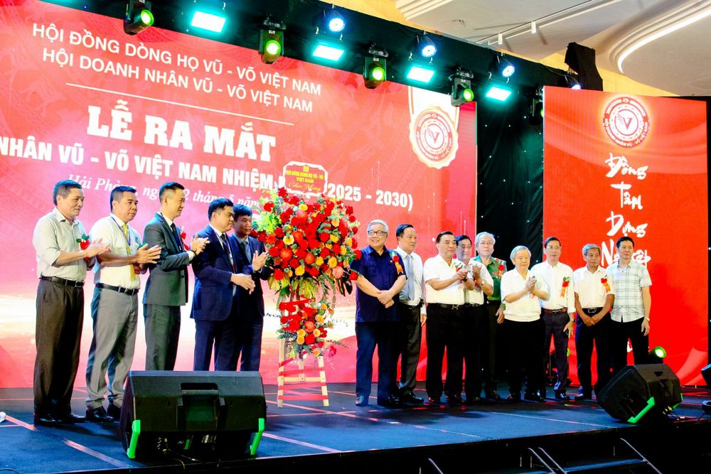 Đoàn đại biểu Hội đồng dòng họ Vũ - Võ Việt Nam tặng hoa chúc mừng sự kiện