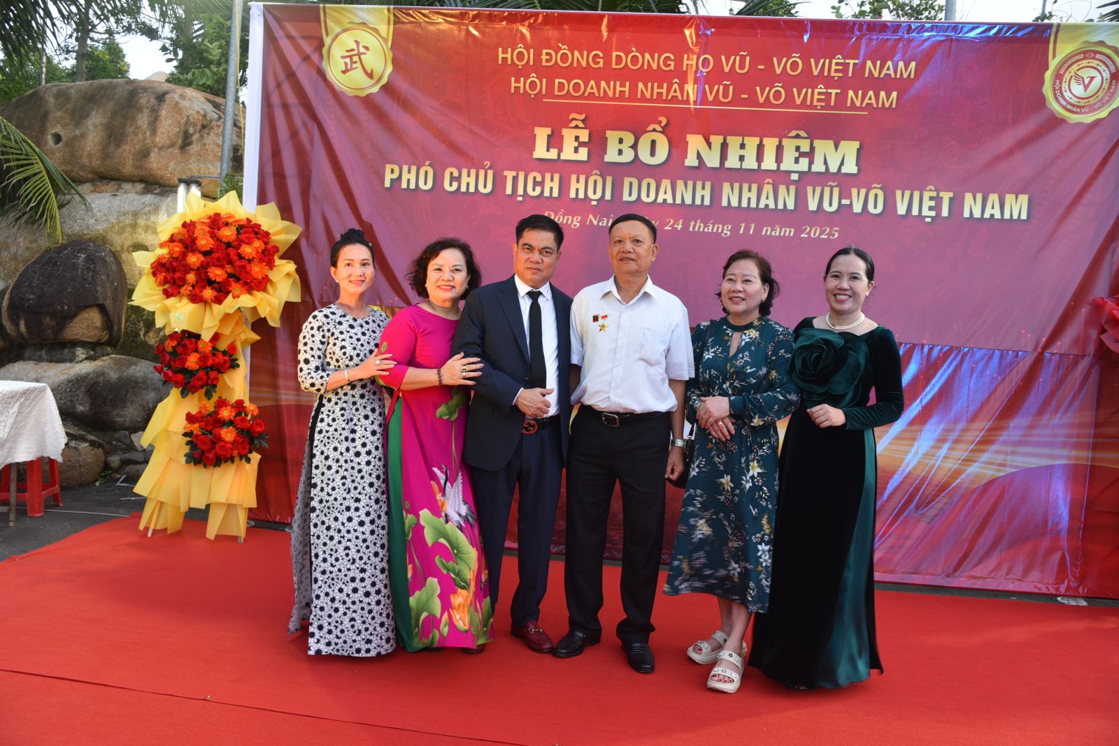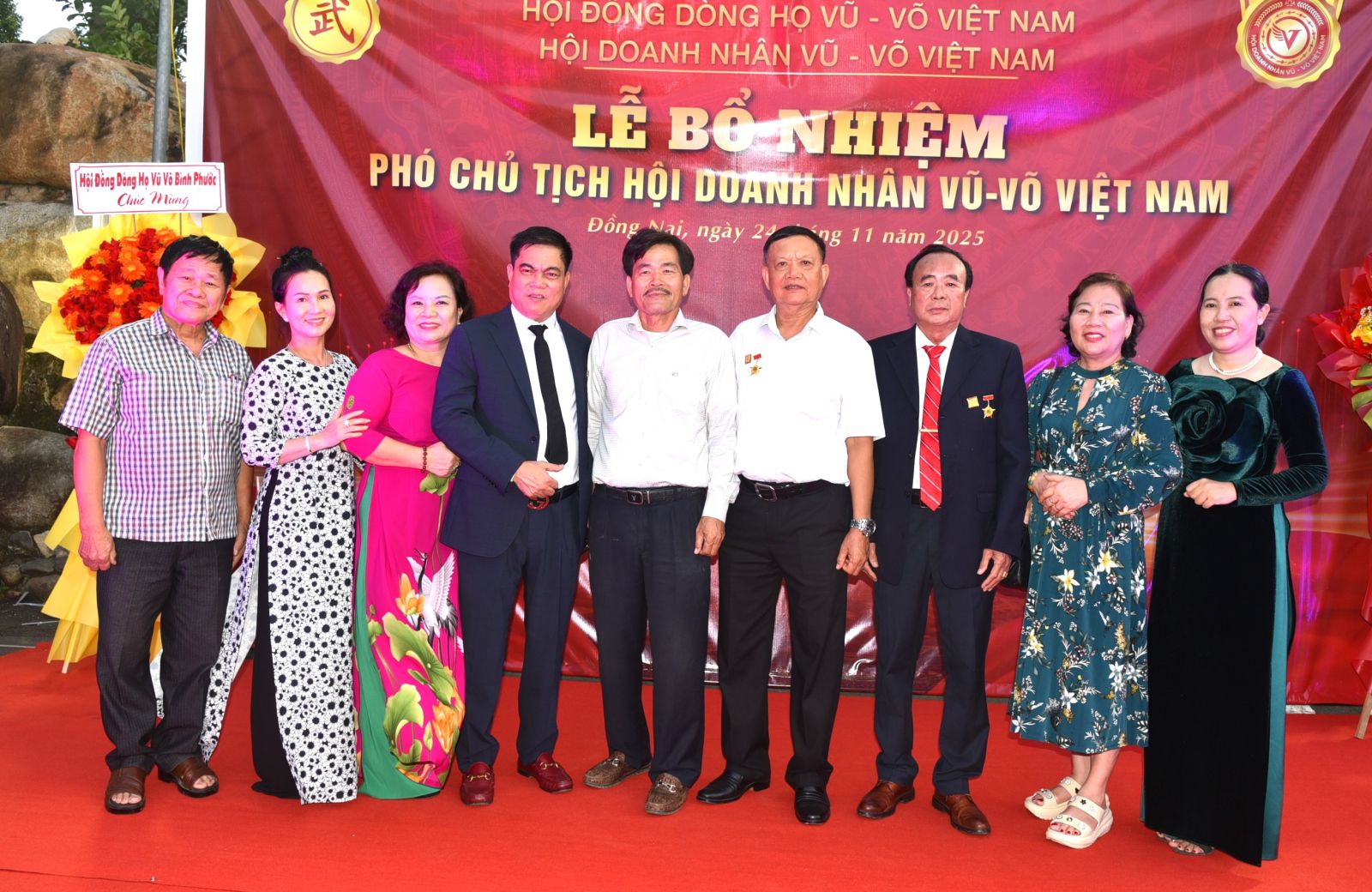 Buổi lễ cũng ghi nhận sự hiện diện của đại diện Hội đồng dòng họ Vũ – Võ Bình Phước, Hội Doanh nhân Vũ – Võ Đồng Nai, Hội doanh nhân Vũ Võ tỉnh Bình Dương, cùng lẵng hoa chúc mừng gửi tới tân Phó Chủ tịch.
